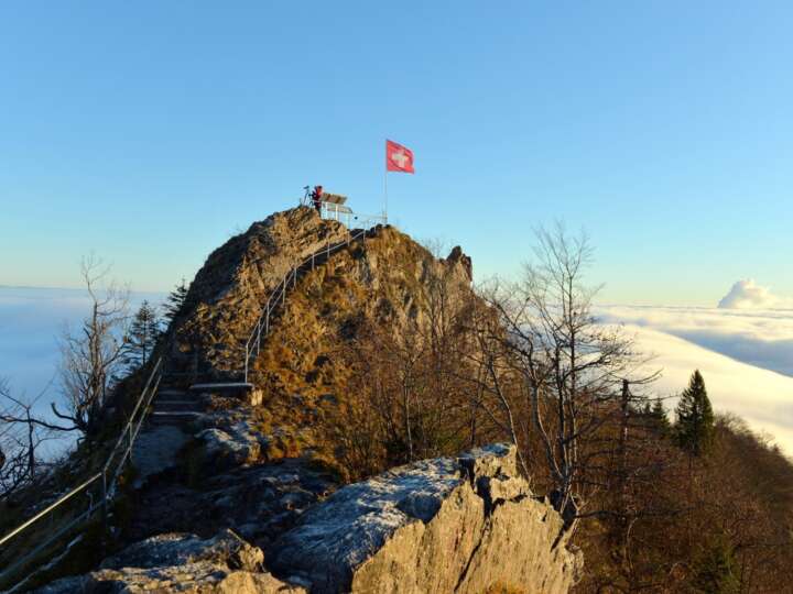 Die Belchenfluhliegt rund 1100 m.ü.M. und ist ein sehr beliebter Aussichtsberg im Jura, der mit dem felsigen Gipfelkopf fast eine Rundumsicht bietet. Die Wanderung vom Dorf auf die Belchenfluh dauert rund 3 Stunden.