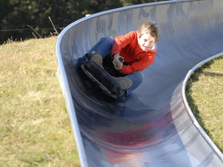 Allein oder zu zweit im Bob sitzend führt eine rassante Abfahrt ins Tal. Ein Riesenspass für Familien, aber auch Verein und Firmen.